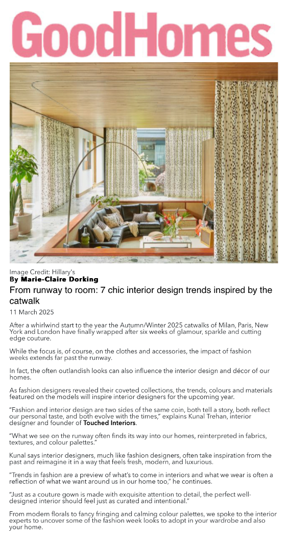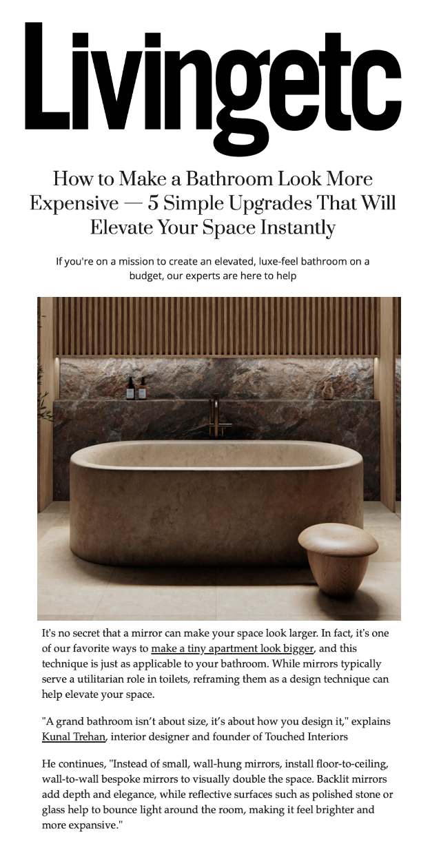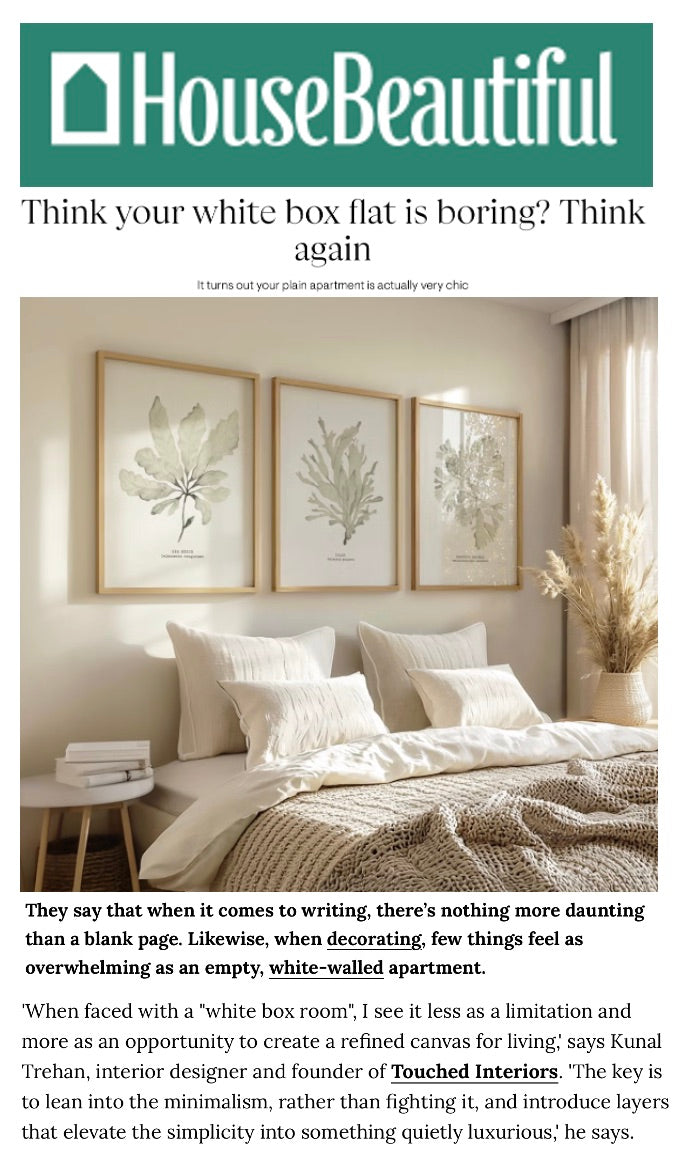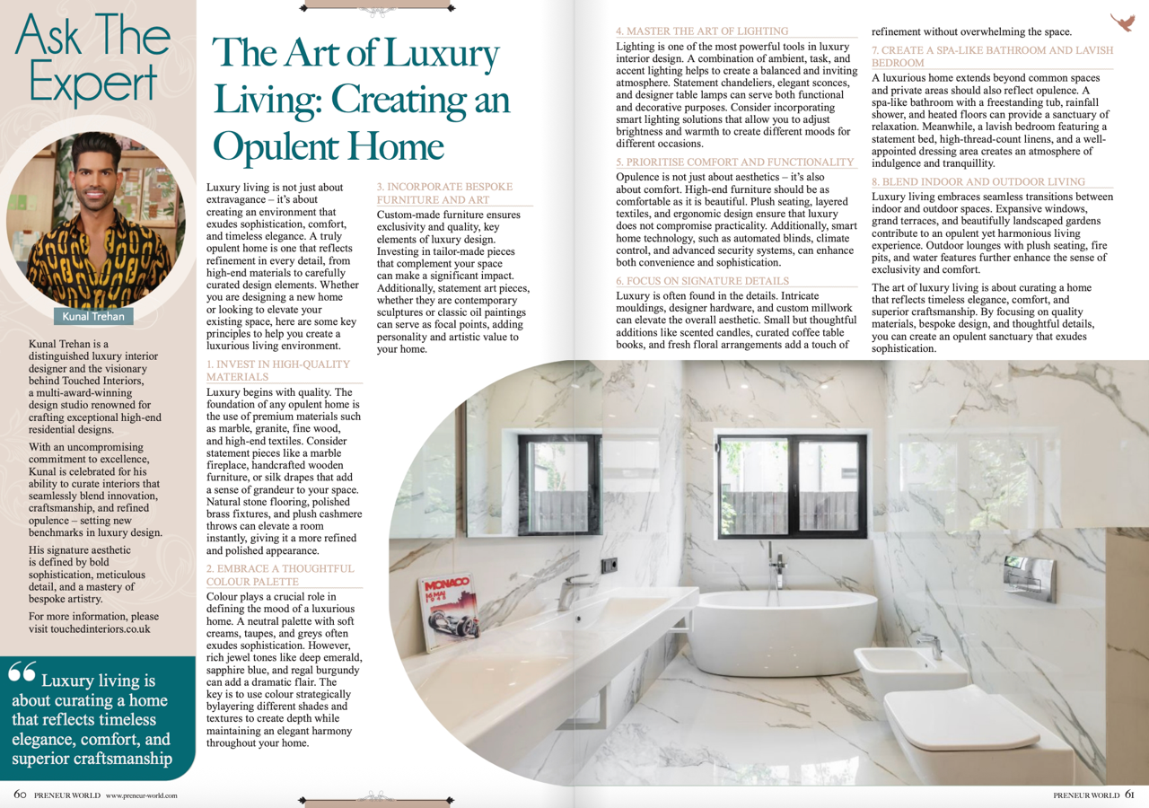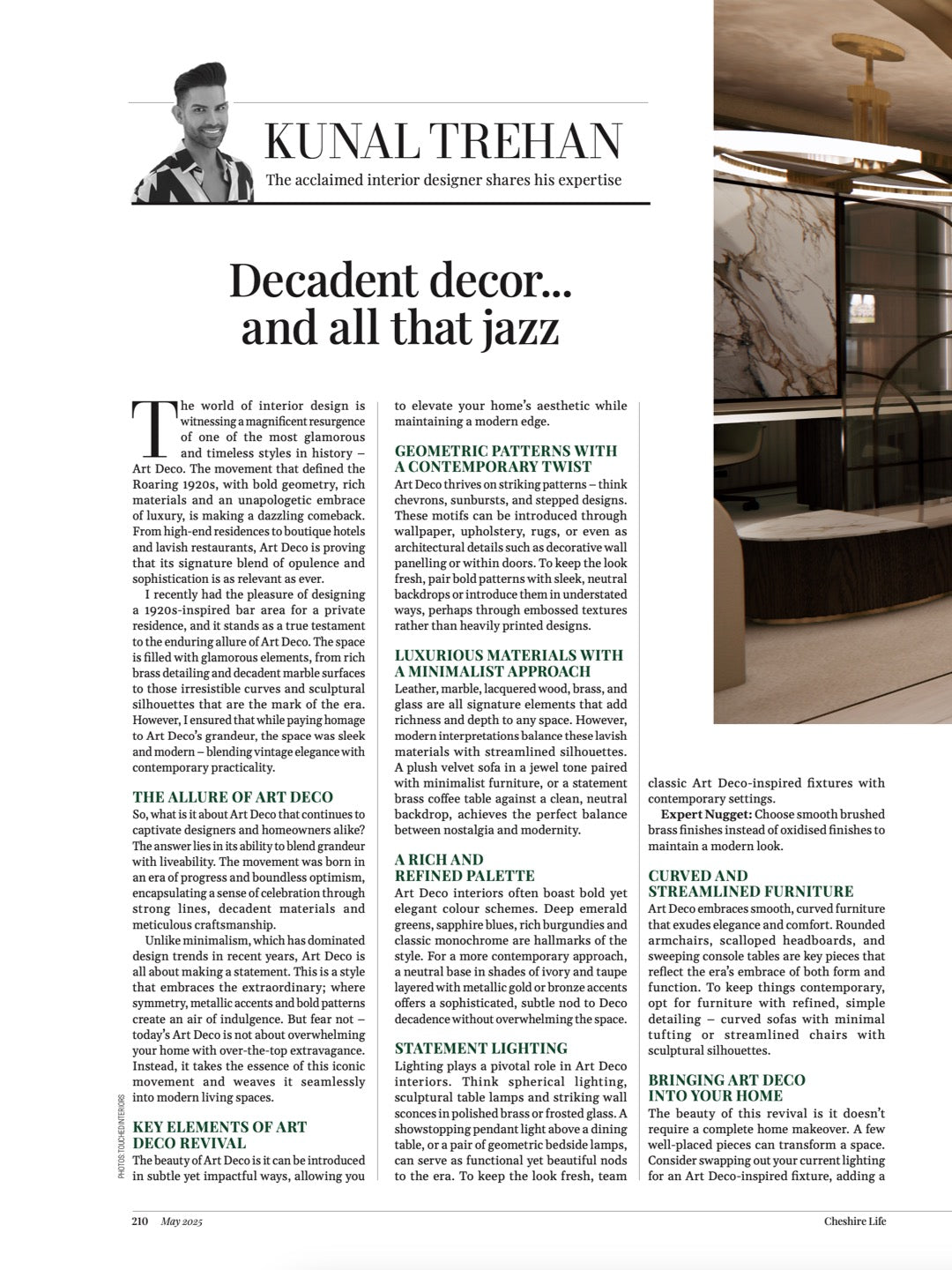 From magazine covers to interiors features and TV screens, Kunal Trehan has firmly established himself as a leading voice in luxury interior design. His work has been spotlighted by industry tastemakers and design publications across the UK and beyond, celebrated for its sculptural aesthetic, refined materiality, and global point of view.