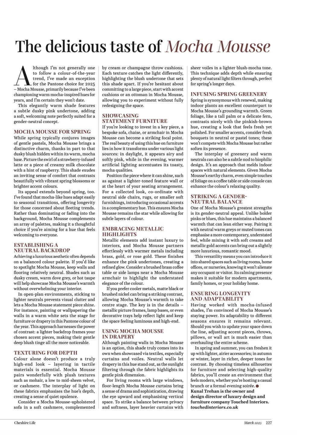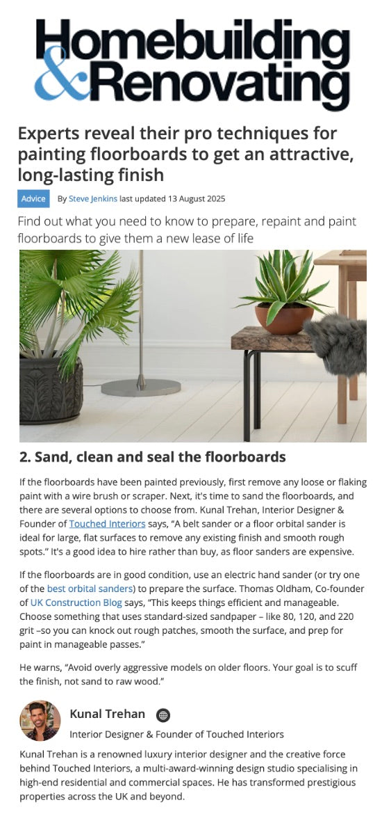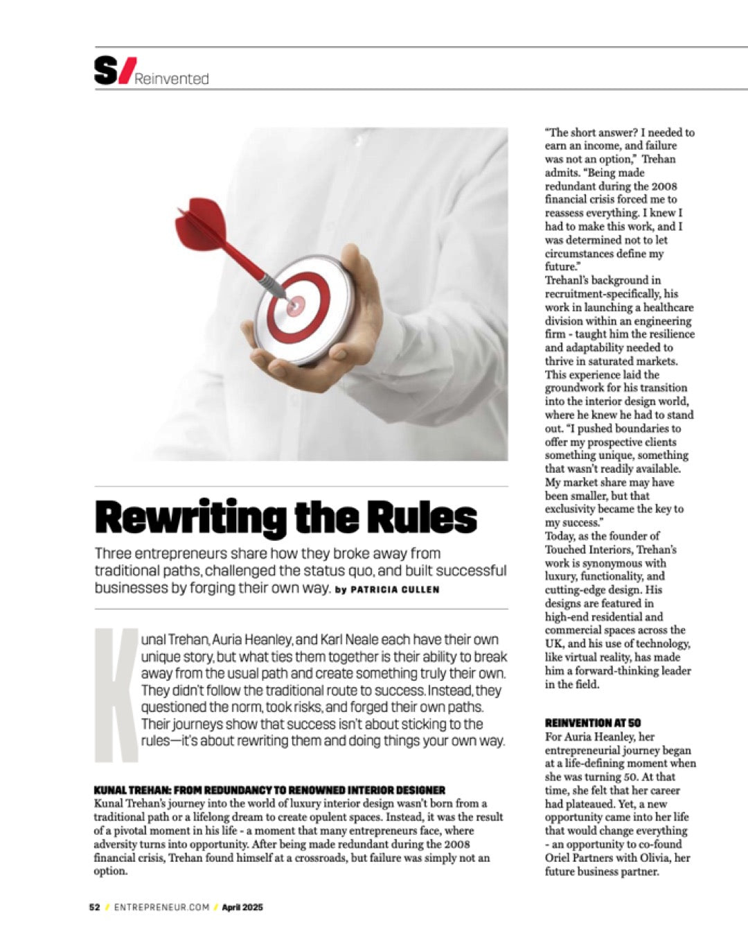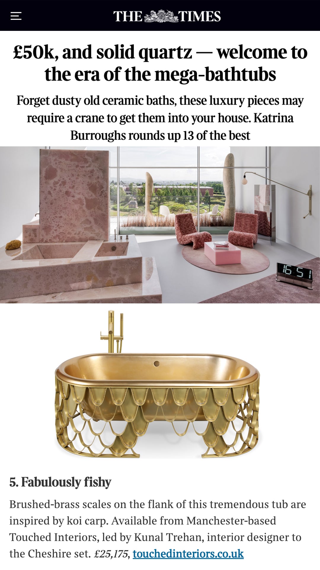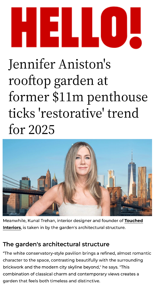 From magazine covers to interiors features and TV screens, Kunal Trehan has firmly established himself as a leading voice in luxury interior design. His work has been spotlighted by industry tastemakers and design publications across the UK and beyond, celebrated for its sculptural aesthetic, refined materiality, and global point of view.