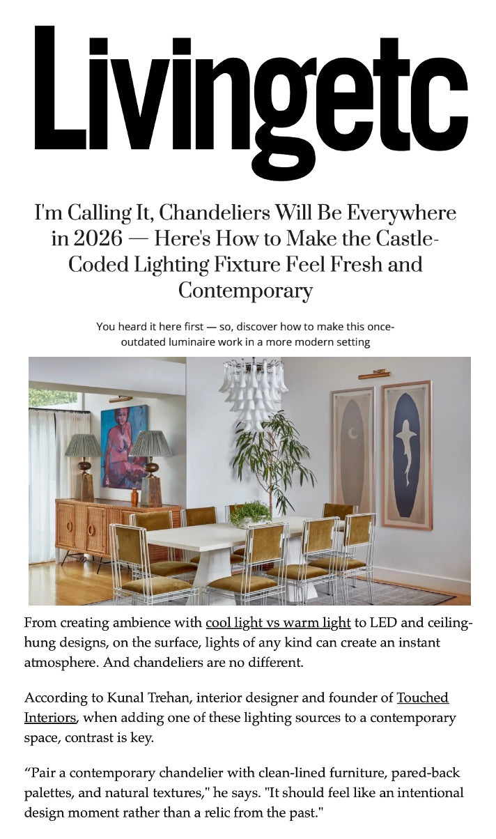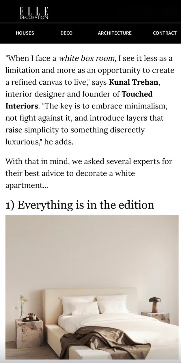 With a reputation for curating interiors that balance quiet luxury with bold expression, Kunal’s name has become synonymous with elevated living. Explore the latest press features and discover why his vision continues to inspire editors, stylists, and design lovers alike.