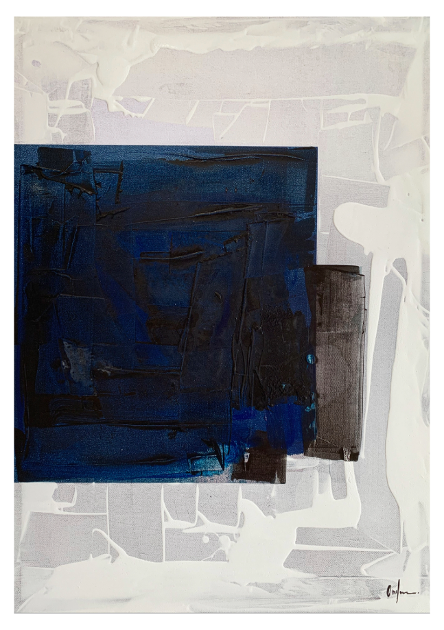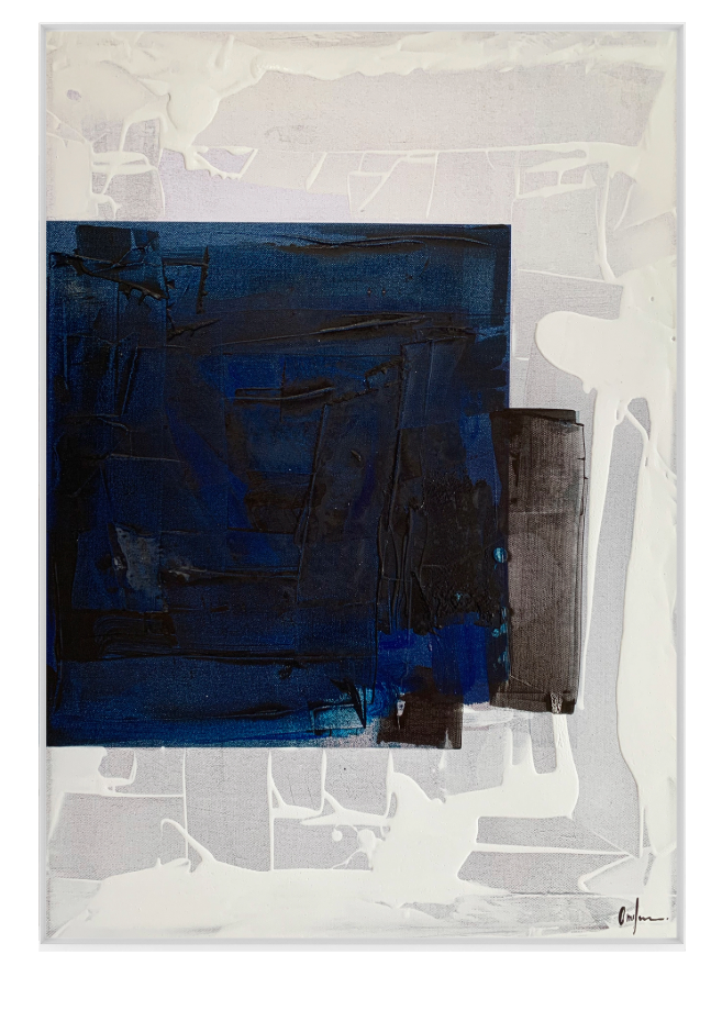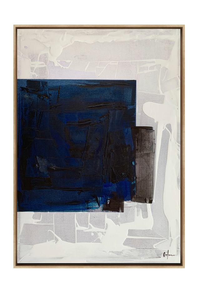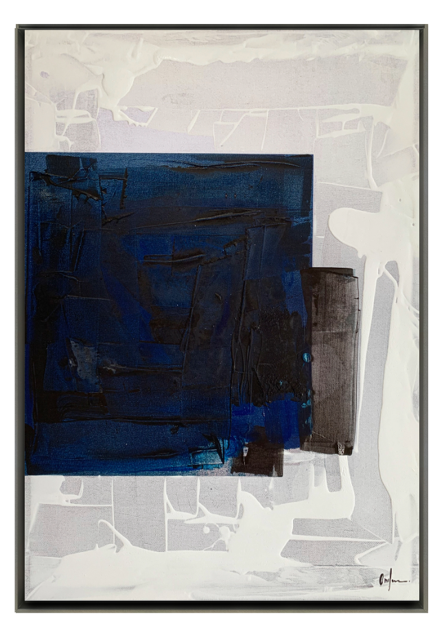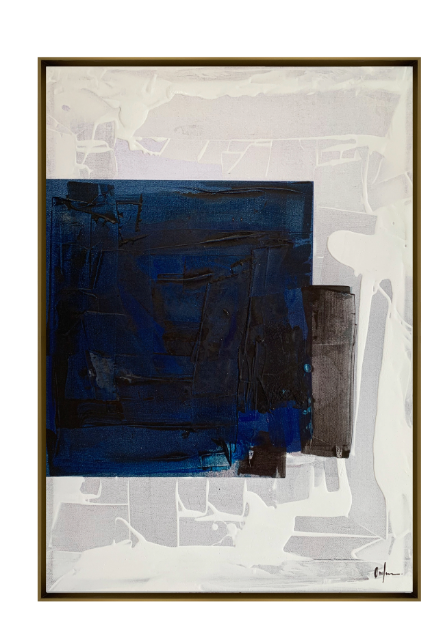 Capomuro 2 continues the dialogue in a more expressive register. The geometry softens as the cobalt and charcoal merge and diverge across the canvas. Marks become looser, more gestural, as if the rigid forms of its pair have begun to unravel into motion. While Capomuro 1 is the anchor, Capomuro 2 is the release, together they balance weight and movement, resolve and exploration.Perfect on its own or even more powerful when brought together as a set with Capomuro 1.