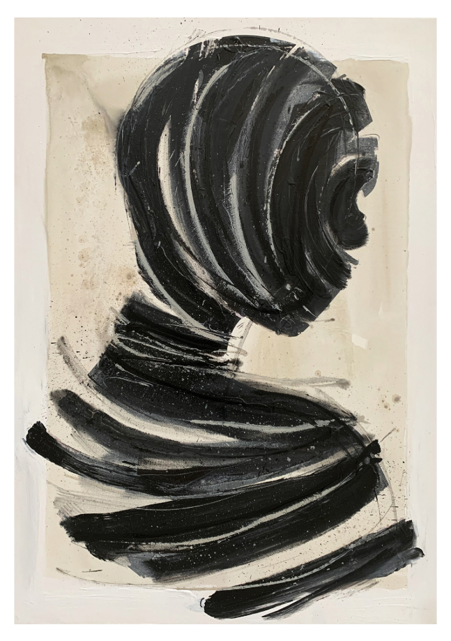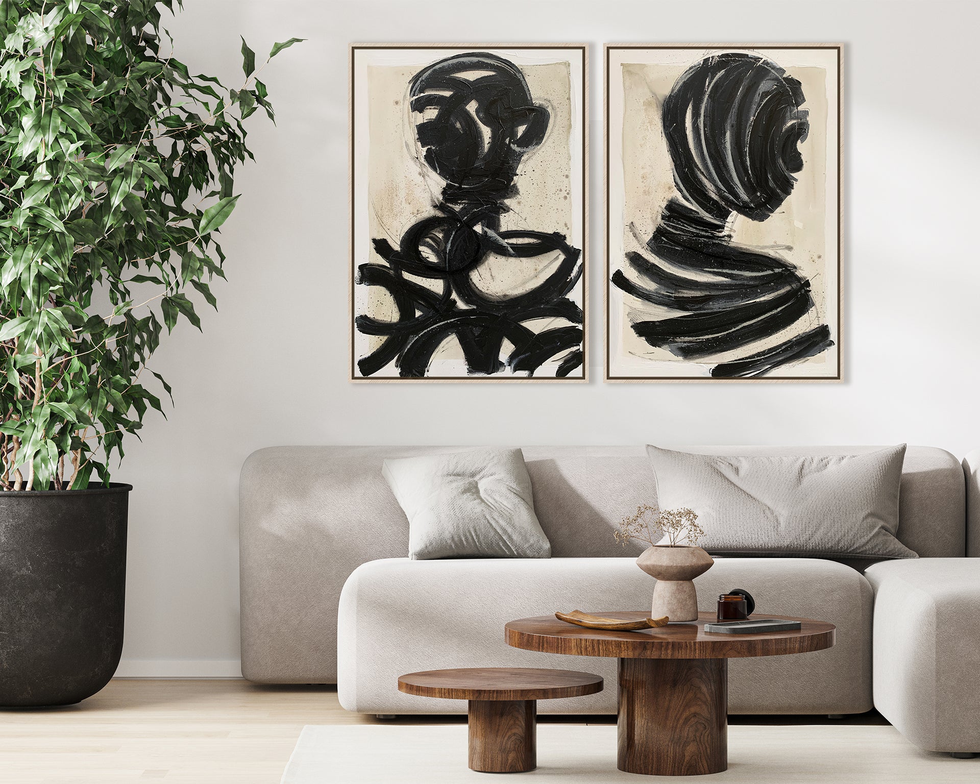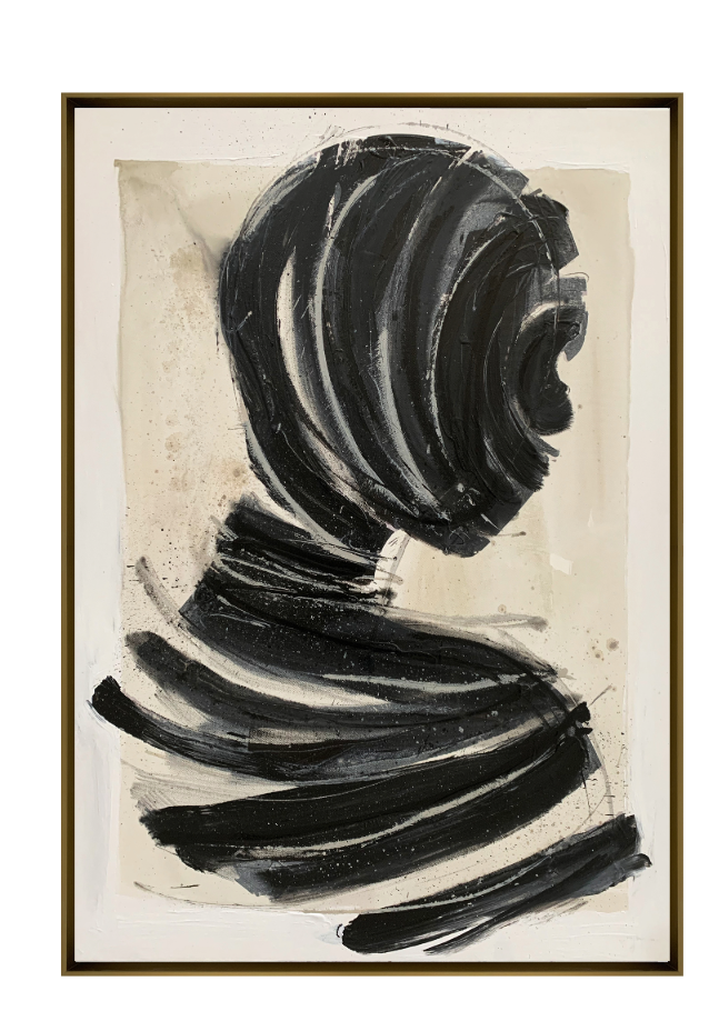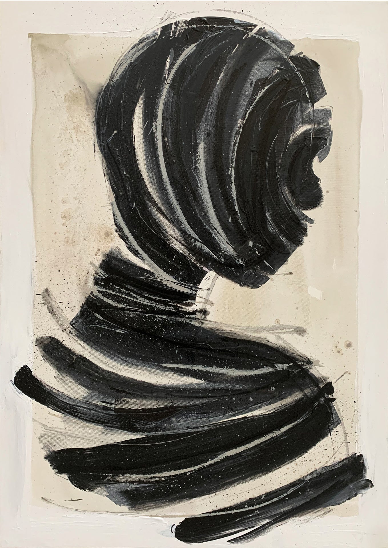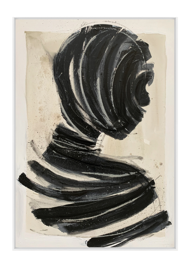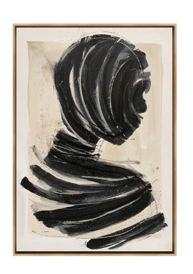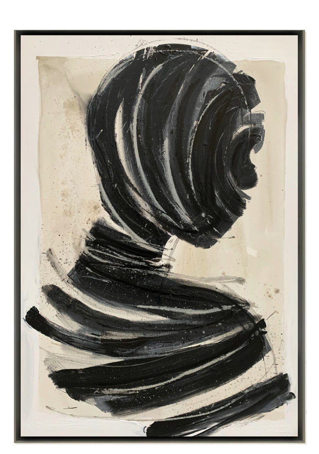 Interno Nero 2 continues the conversation of its pair with greater clarity and quiet tension. The figure emerges in sweeping arcs of black, their repetition almost sculptural, as though wrapped or carved. Where the first piece is intuitive and tangled, this one is more poised, turning inward. Its lines suggest a form held together by restraint rather than impulse. Still abstract, still elusive, but with a clearer silhouette, a companion in tone, but distinct in posture. Together, they form a study in duality: raw expression and quiet resolve.Perfect on its own or even more powerful when brought together as a set with Interno Nero 1.