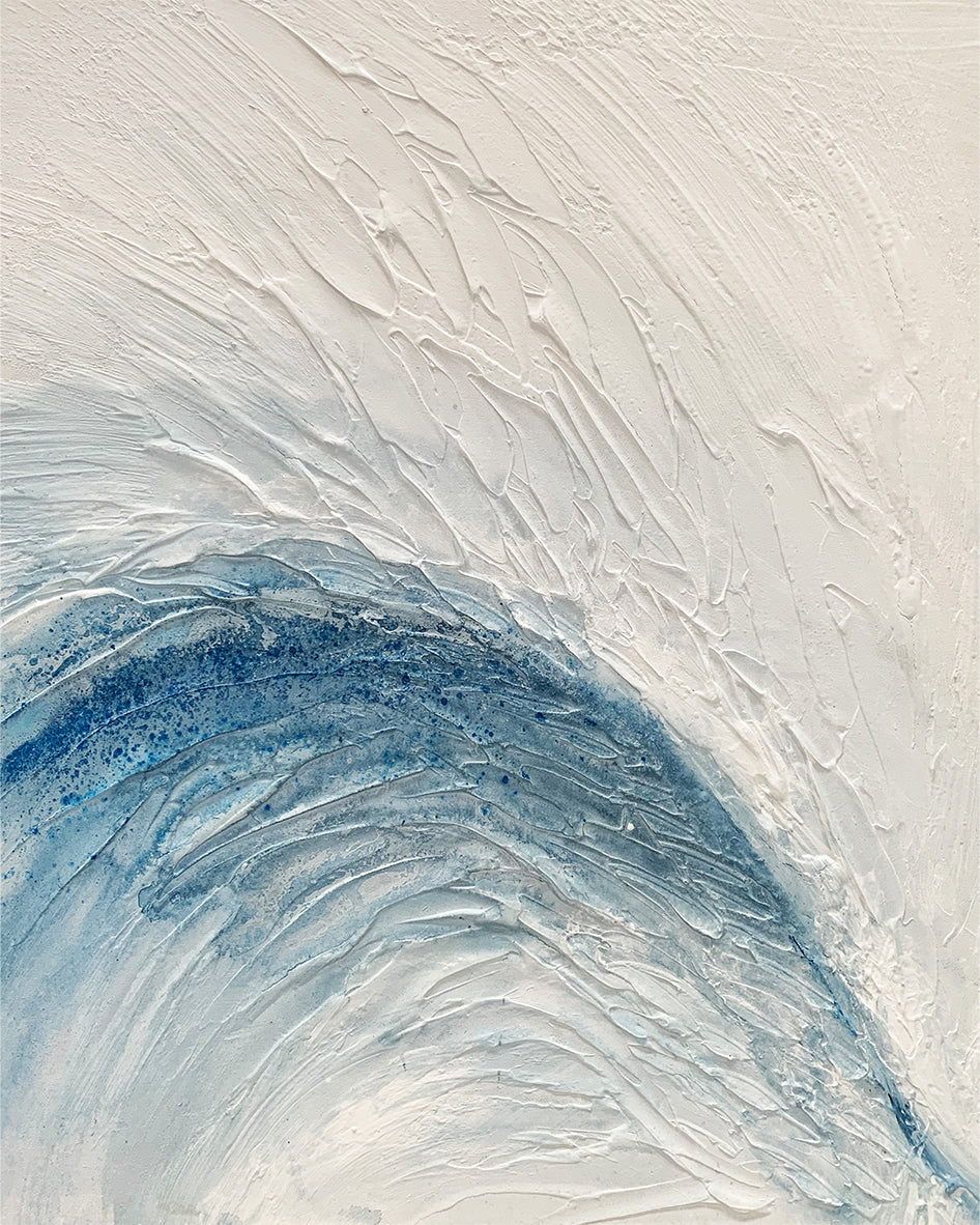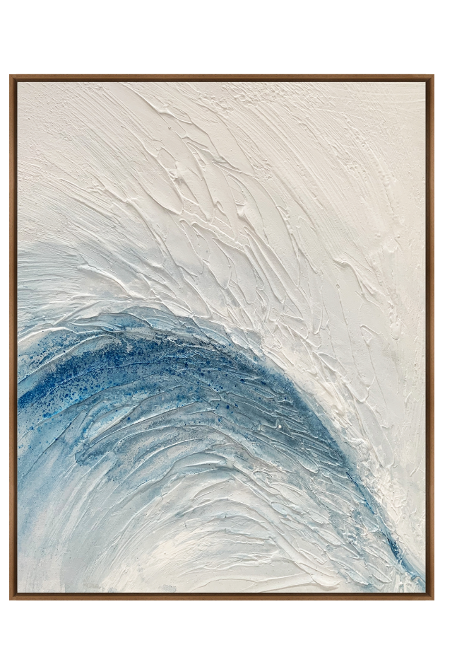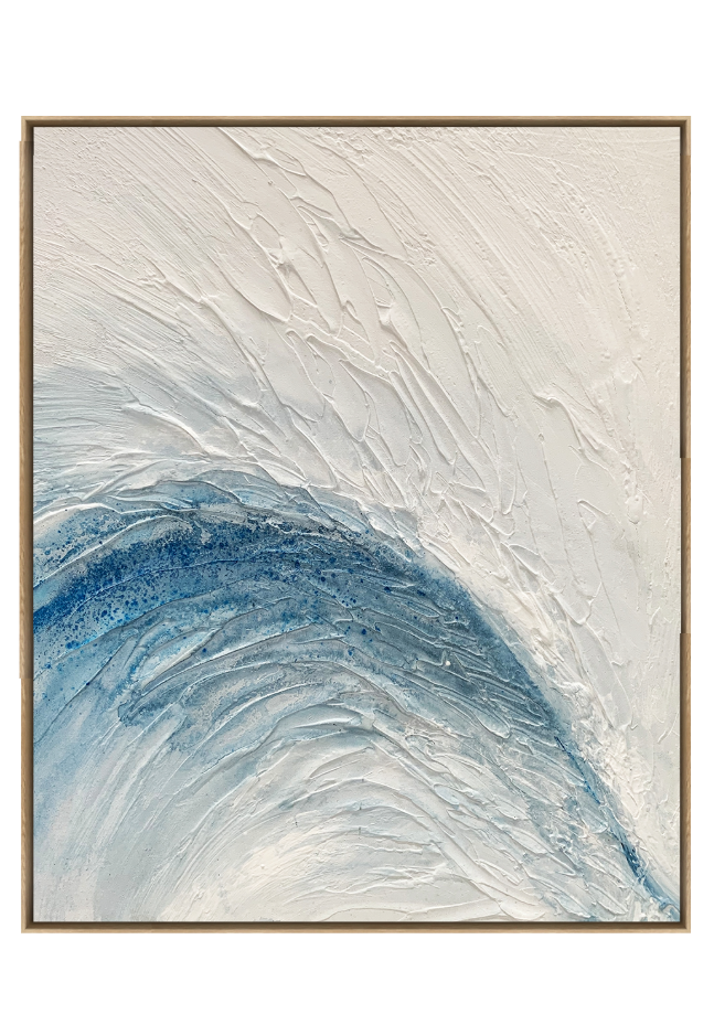 Ismara Canvas Artwork captures the movement of water and light with graceful fluidity. Textured white strokes give way to a sweeping arc of layered blues, like a cresting wave or the rise of a calm swell. Both energising and serene, this piece brings clarity, softness and a sense of natural rhythm to refined spaces.
