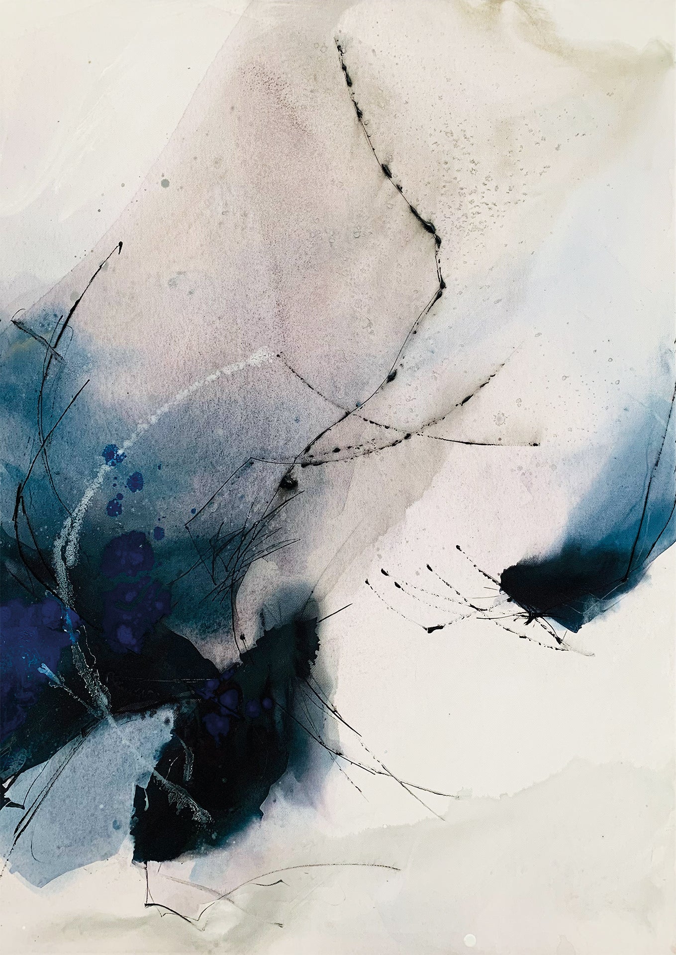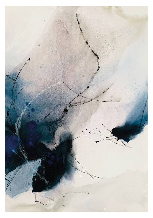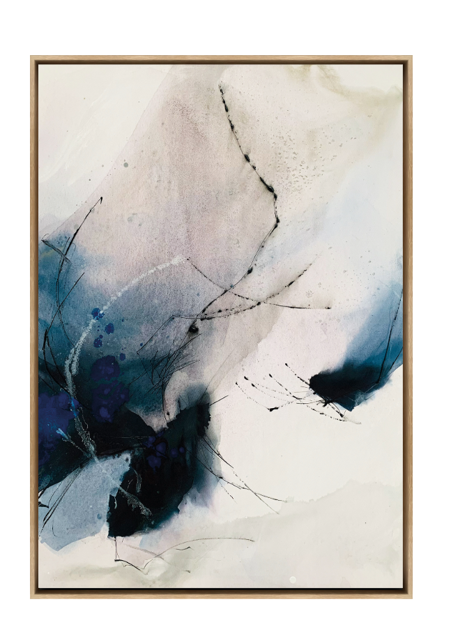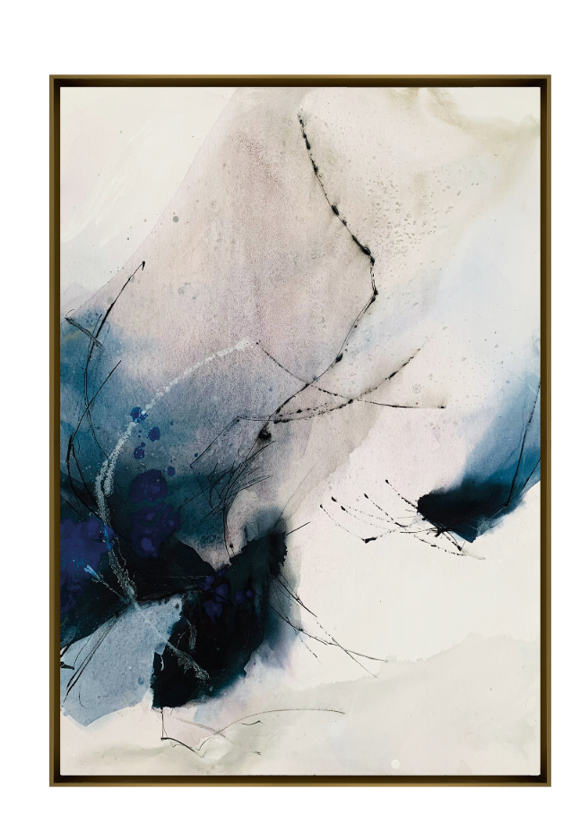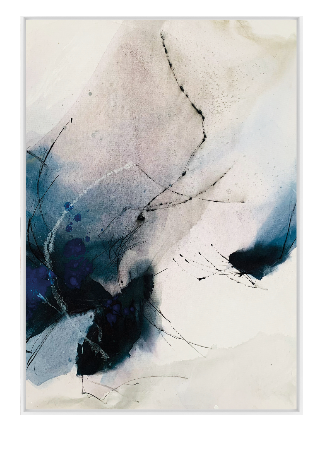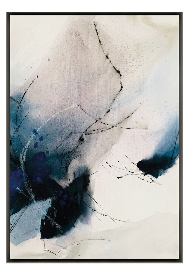Onda 2 continues the sense of fluidity and quiet momentum, this time with a more spacious, breath-like presence. Misty gradients of lavender and blue stretch across the composition, brushed with delicate lines and splashes of ink that feel both intentional and free. Where the first piece moves like a rising swell, this one drifts like an exhale, offering stillness without silence. The two together capture a natural rhythm,  tension and release, approach and retreat. Perfect on its own or even more powerful when brought together as a set with Onda 1.