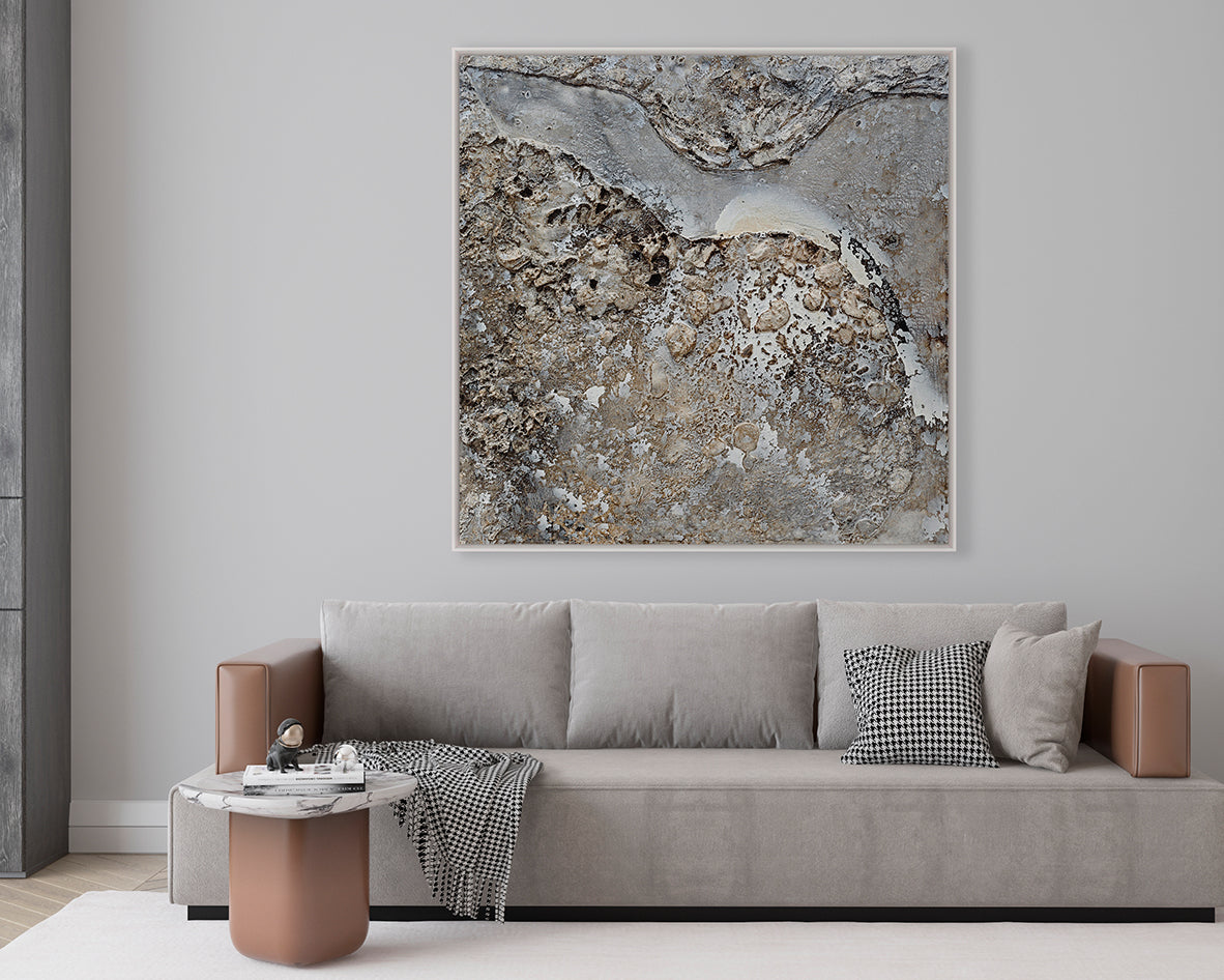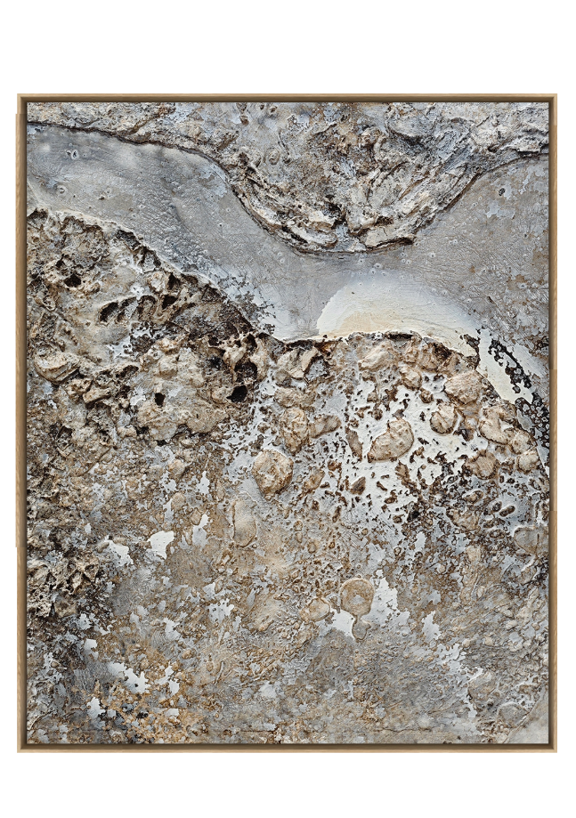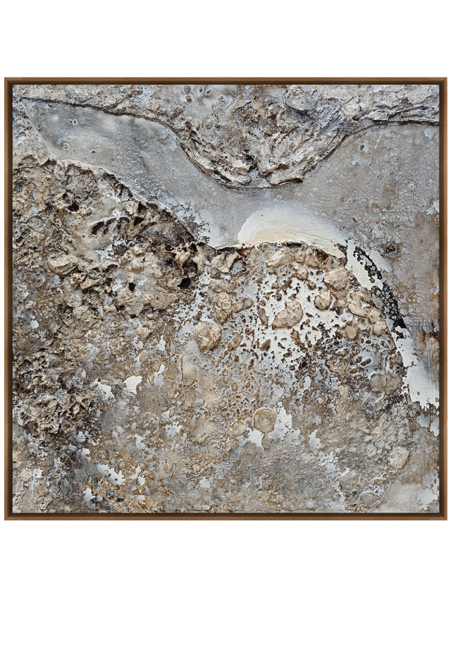 Tramonti evokes the weathered elegance of timeworn stone and the quiet poetry of natural erosion. With its mineral palette and richly textured surface, it mirrors the slow, sculptural work of wind and water. Earthy, grounded and quietly luminous, this piece brings a sense of permanence and calm sophistication to its surroundings.