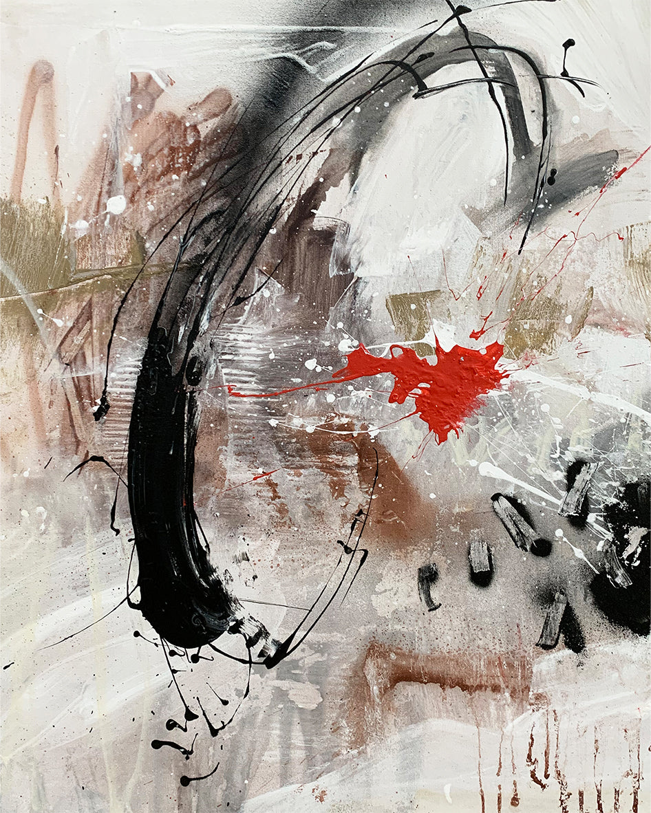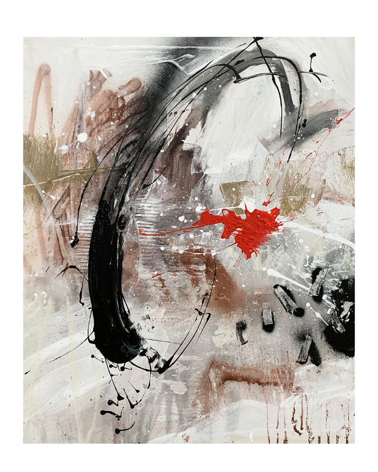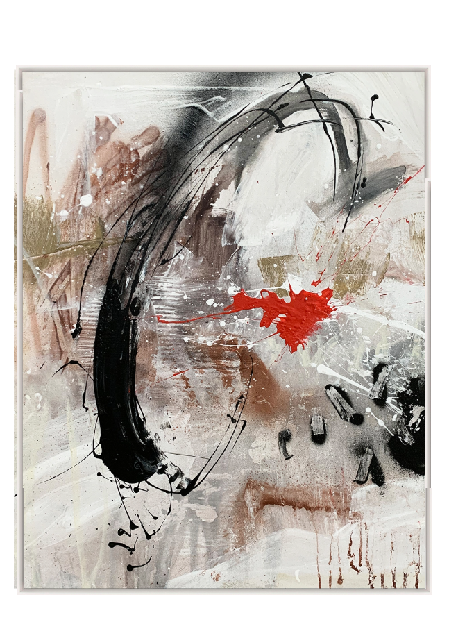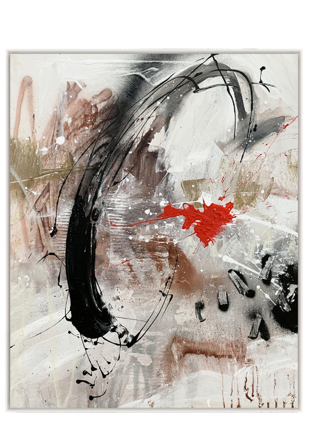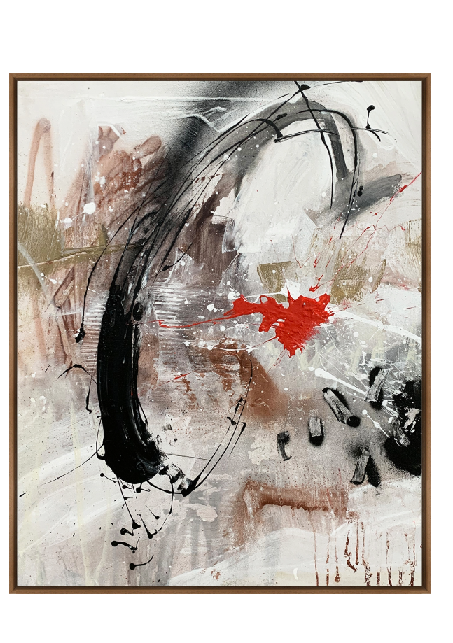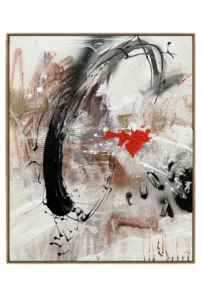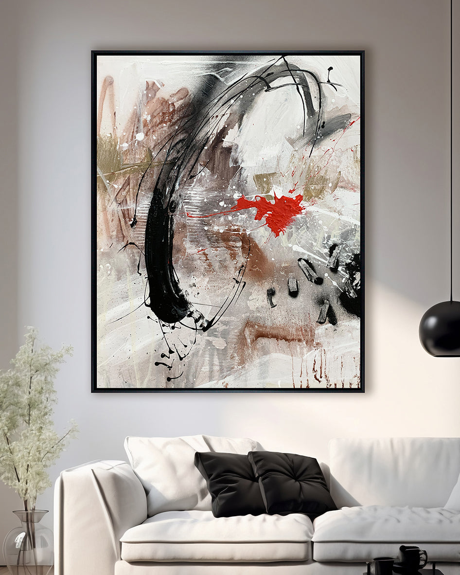 Veltrix captures the moment where control meets chaos. A commanding black arc sweeps across layers of texture, anchored by a pulse of red that feels both raw and deliberate. Soft neutrals in the background allow the bold gestures to take centre stage, creating a sense of motion, rhythm and instinct. This piece is alive with creative force, the perfect focal point for a space that celebrates individuality and momentum.
