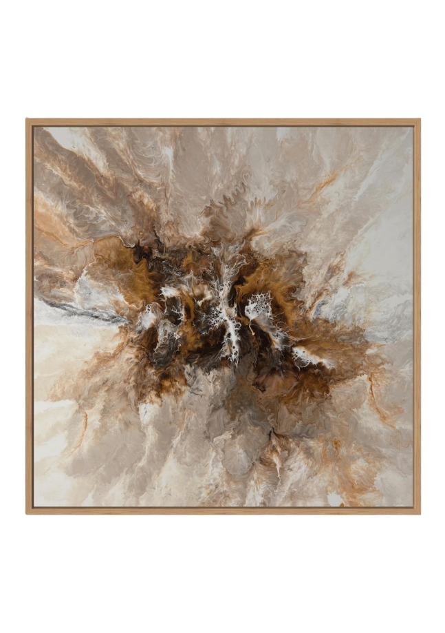 Oak Shimmer captures the diffused radiance of golden hour light grazing a wooded horizon. The artwork radiates a polished warmth, reminiscent of sunbeams filtering through the branches of age-old oaks. Every form within the composition feels intentional yet unforced, echoing the serenity of natural light meeting organic silhouettes. It is an ode to quiet luxury, composed with finesse and imbued with a timeless glow.