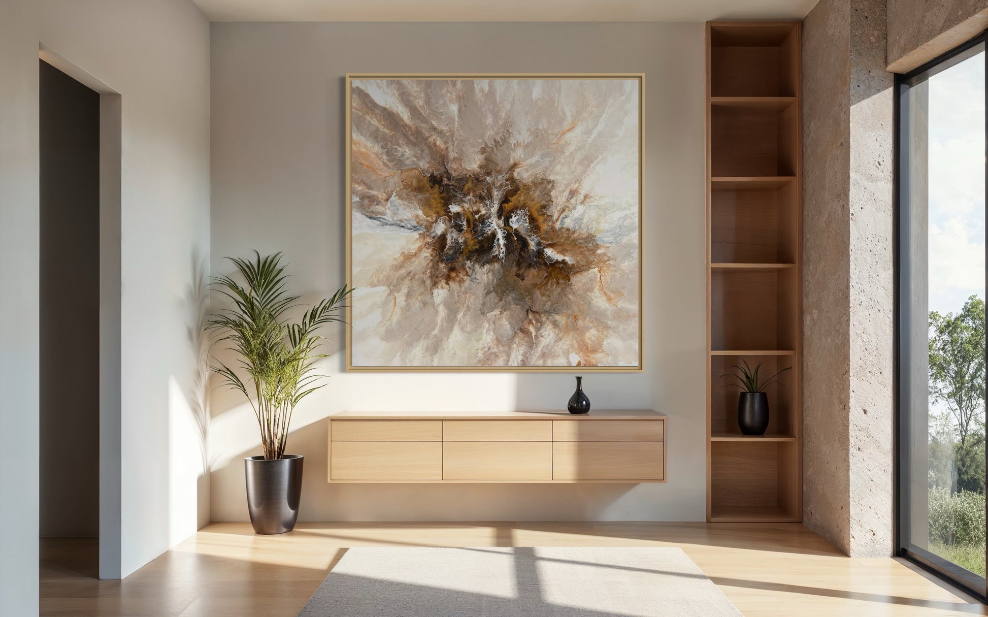 Each artwork in the collection is a study in restraint and composition. The forms echo natural phenomena, architectural impressions, and contemplative silence. These pieces possess an elemental calm, achieved through tonal harmony, graceful layering, and a curated sense of balance.
